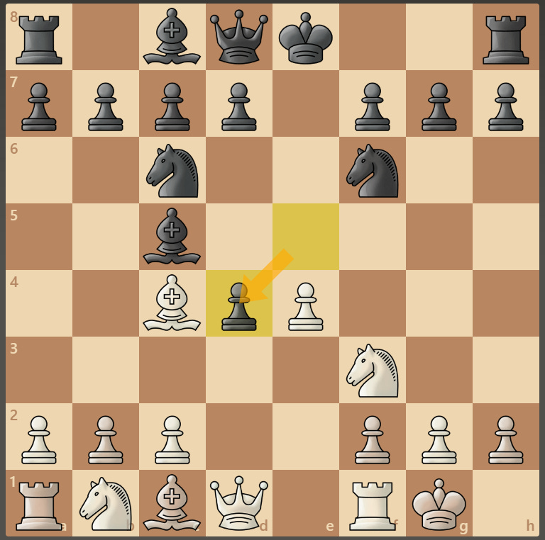 This is black’s best response and white should continue with 7. exf6 dxc4, 8. Re1+ and black has two options— Be6 and Kf8. For the move 8..Kf8, I’ll give you the basic plans and attach a sample game (It is one of my online blitz games). 8..Be6 will be focused here.
